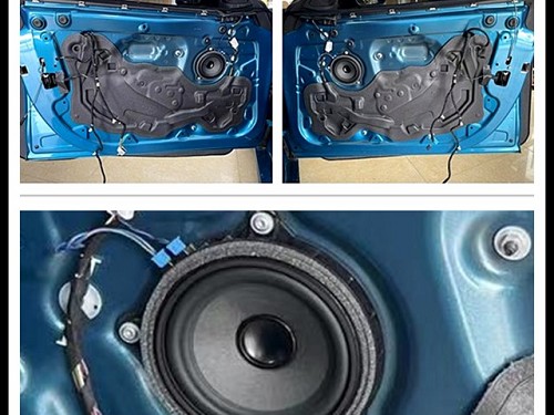 拆開門板飾蓋,可以看到原車中低音做工藝一般
