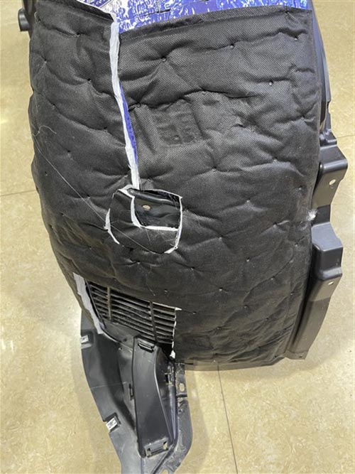 汽車行駛產生的路噪和胎噪也不容忽視,為此改裝師使用大能藍金剛隔音材料對輪弧做雙層隔音處理,這就相當于切斷了路噪和胎噪傳播途徑,阻止路噪和胎噪傳入。致力為車主打造一個安靜舒適的聽音空間!