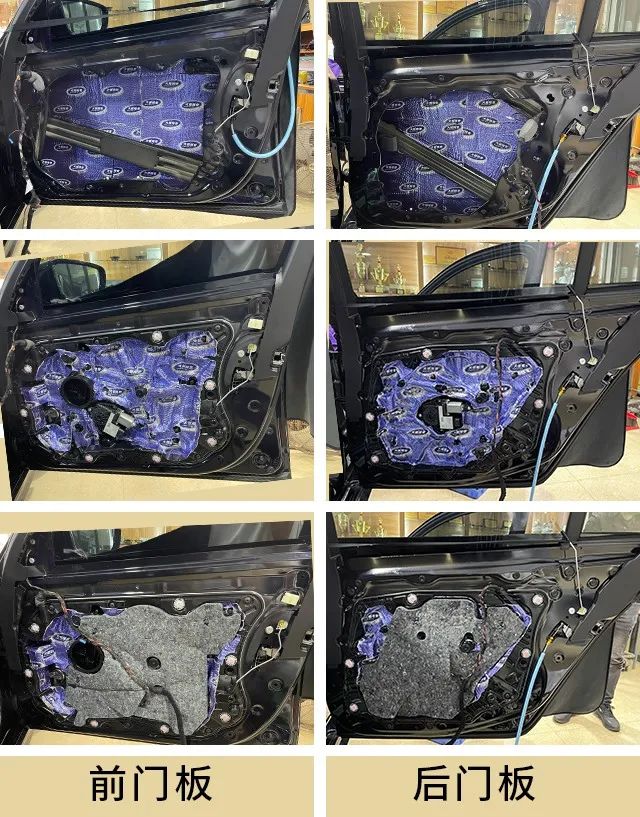 以下圖片所示,可以知道原車門板隔音不足,風噪很容易通過門板傳入進來,對音響品質產生影響。所以我們的改裝師使用大能藍金剛,對前后門板做了雙層隔音處理,從而減少了噪聲對音響品質的干擾。