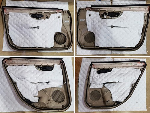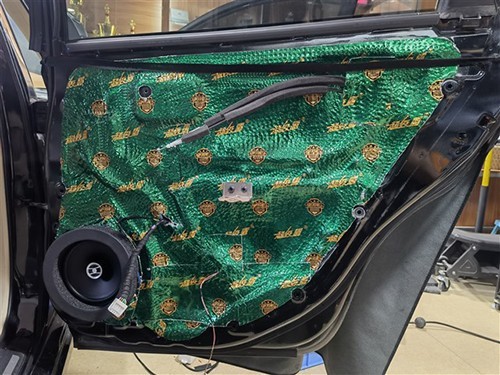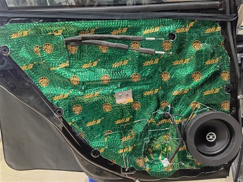 原車門板隔音措施僅有一層塑料薄膜,起不到任何隔音效果。門板隔音能提升中低音音質(zhì),車主覺得必須要做,便在年中鉅惠音響套餐的基礎(chǔ)上多加了四門隔音。